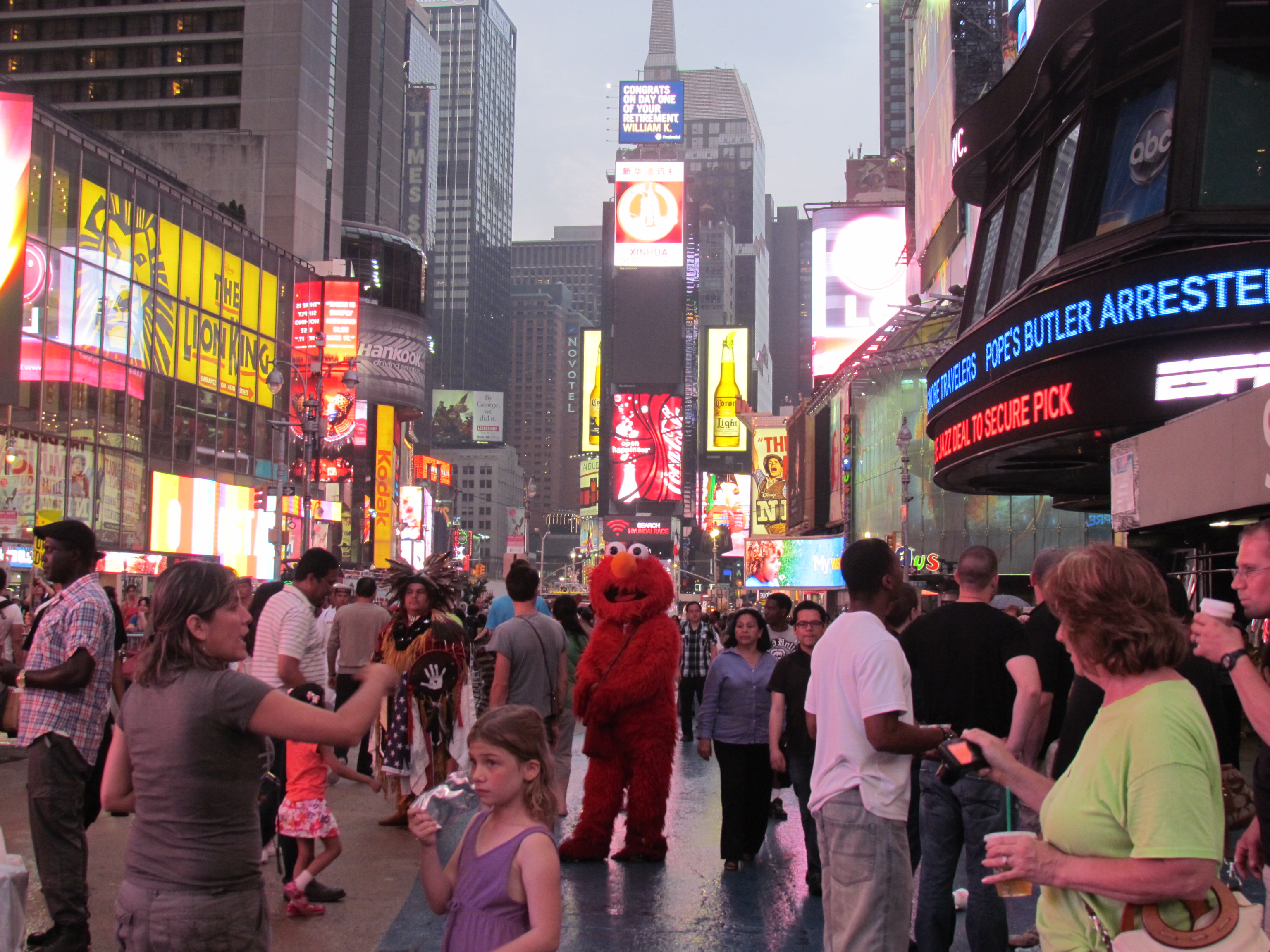 Me and the TC hit New York a couple of days ago. On our first evening, we wandered into Times Square quite by chance. It was that magic time when day is just about to yield to night. If you’re ever in the neighbourhood, make sure you catch the square at that time. It was perfect.