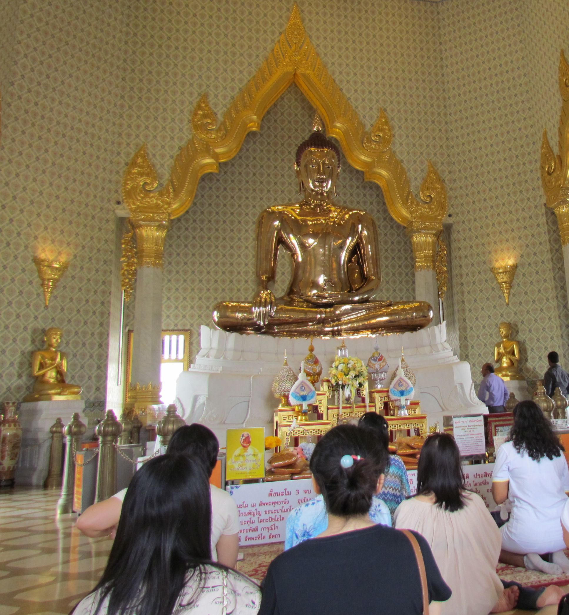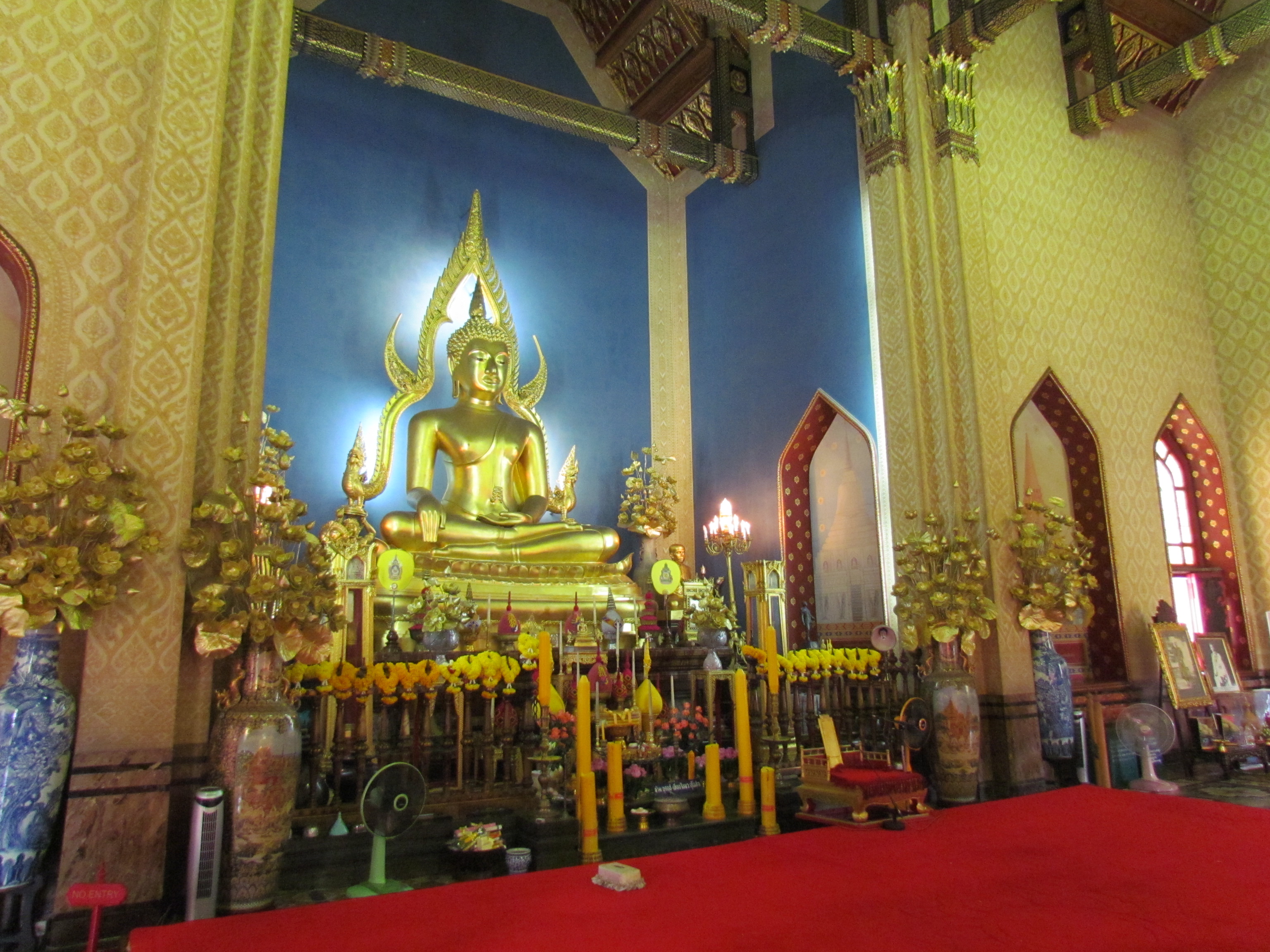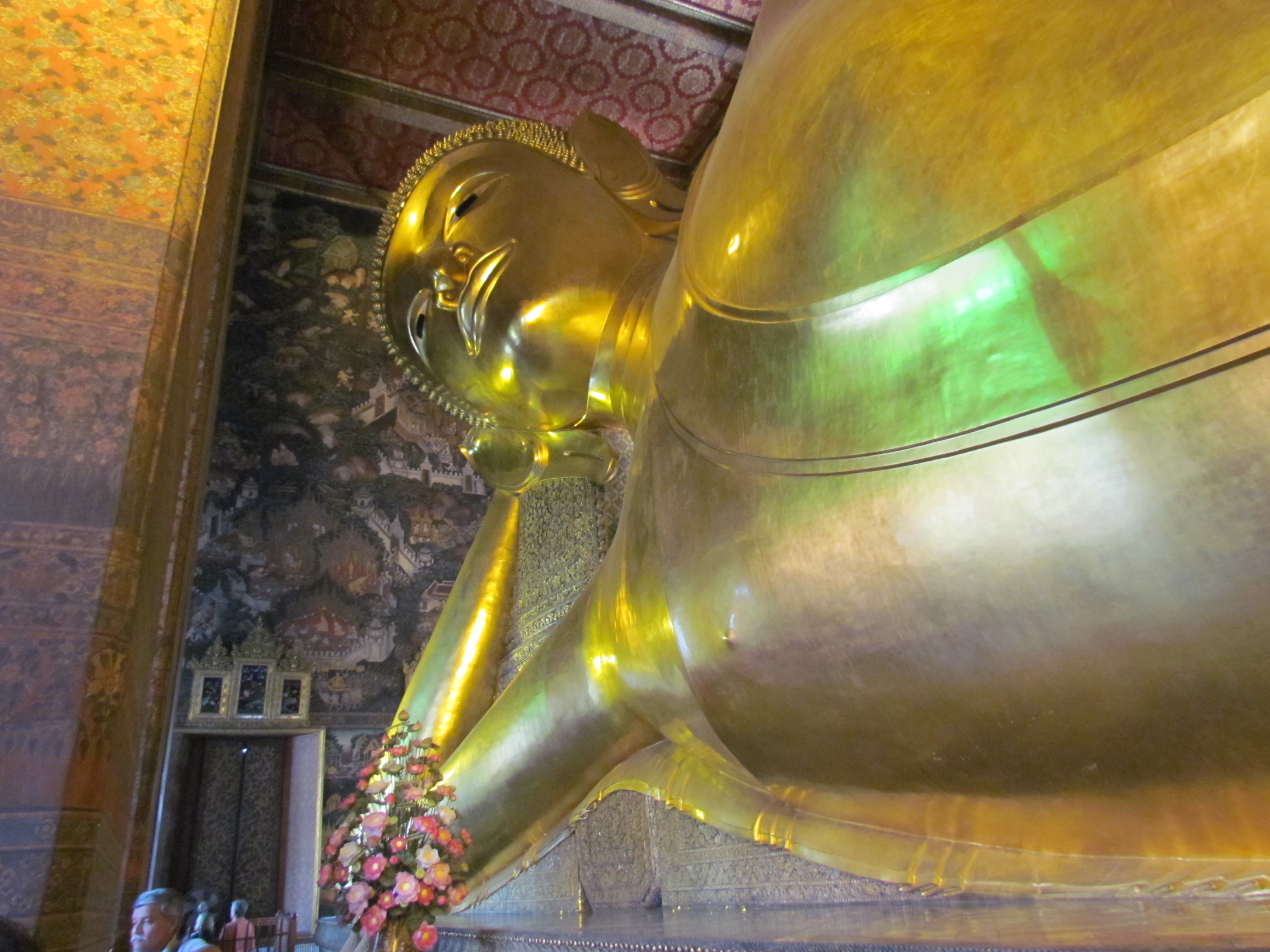When first built, 700 years ago, the statue was encased in a layer of plaster, presumably to hide the valuable gold. Only in 1955, when people were moving the statue to its new home at Wat Traimit, did they chip the casing by mistake and discover the pure gold underneath. “Wat Traimit is a lucky temple,” remarked our guide. This worm was rather taken with the statue’s noble profile: