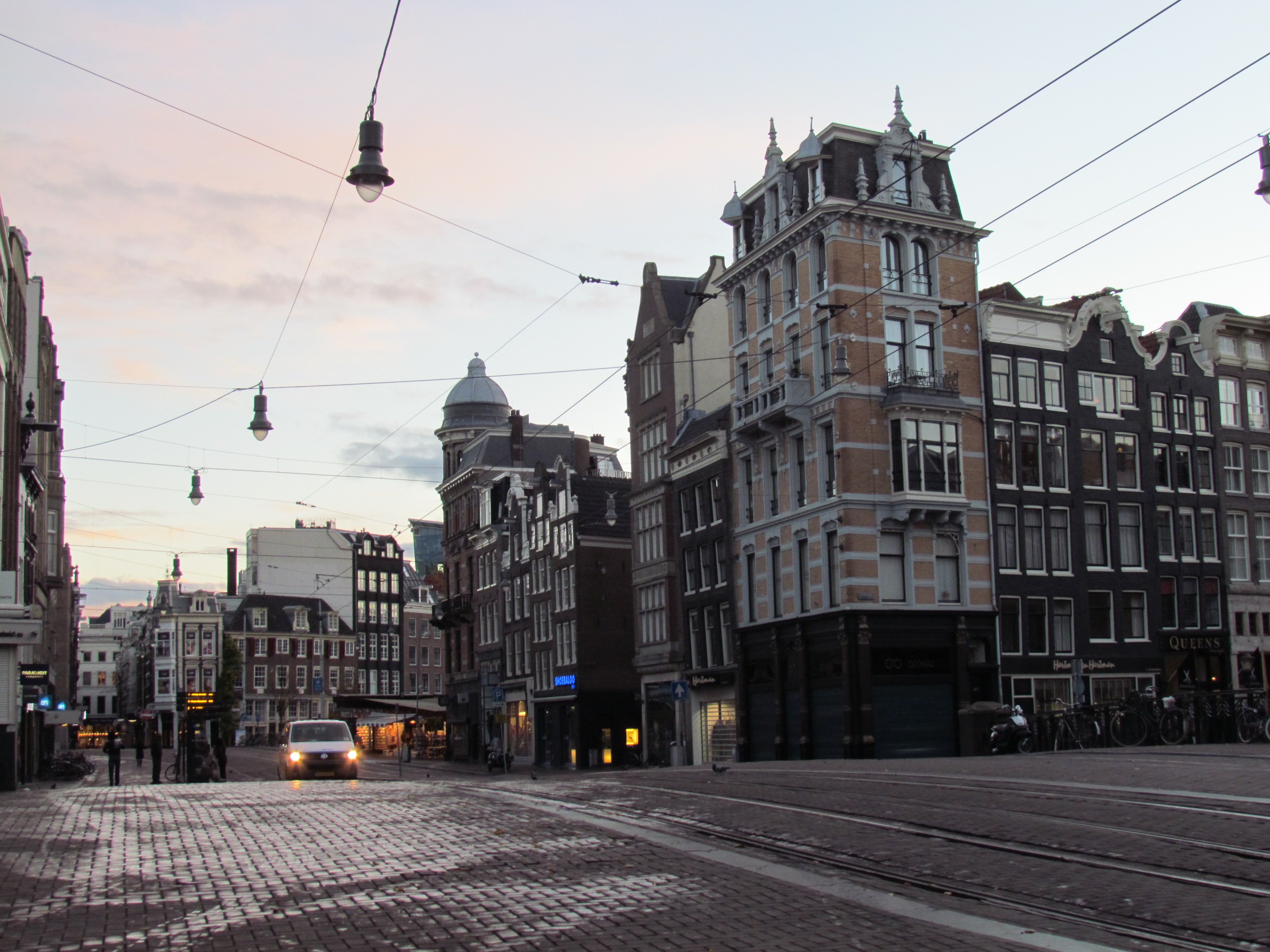 Aha, the TC succeeded in taking a photograph without a canal. Tram lines in an early morning street scene: