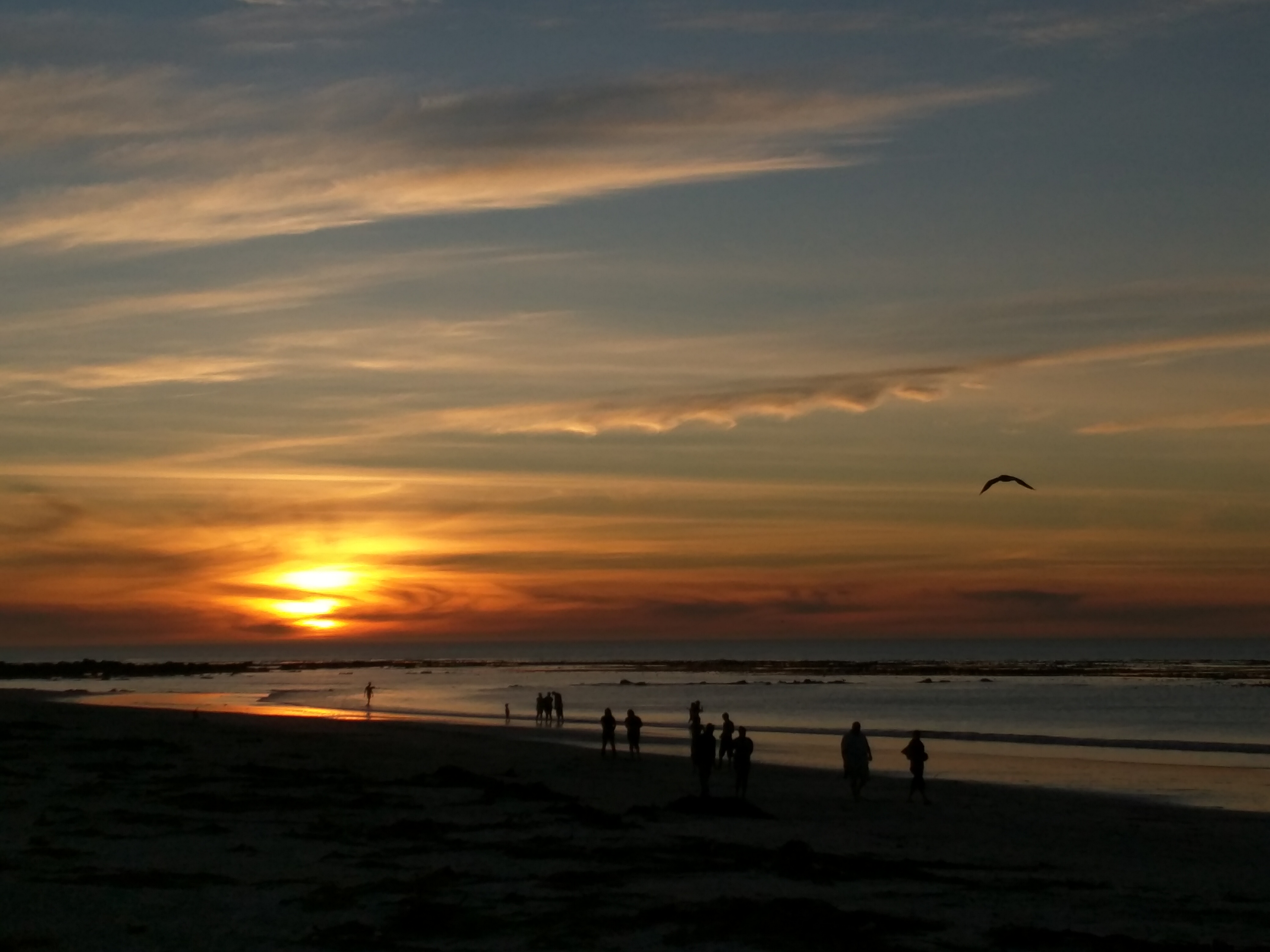 Me, unmistakable even in silhouette, at Melkbosstrand on the west coast of South Africa. In the distance is Table Mountain, another thing that’s fairly well known in silhouette.
