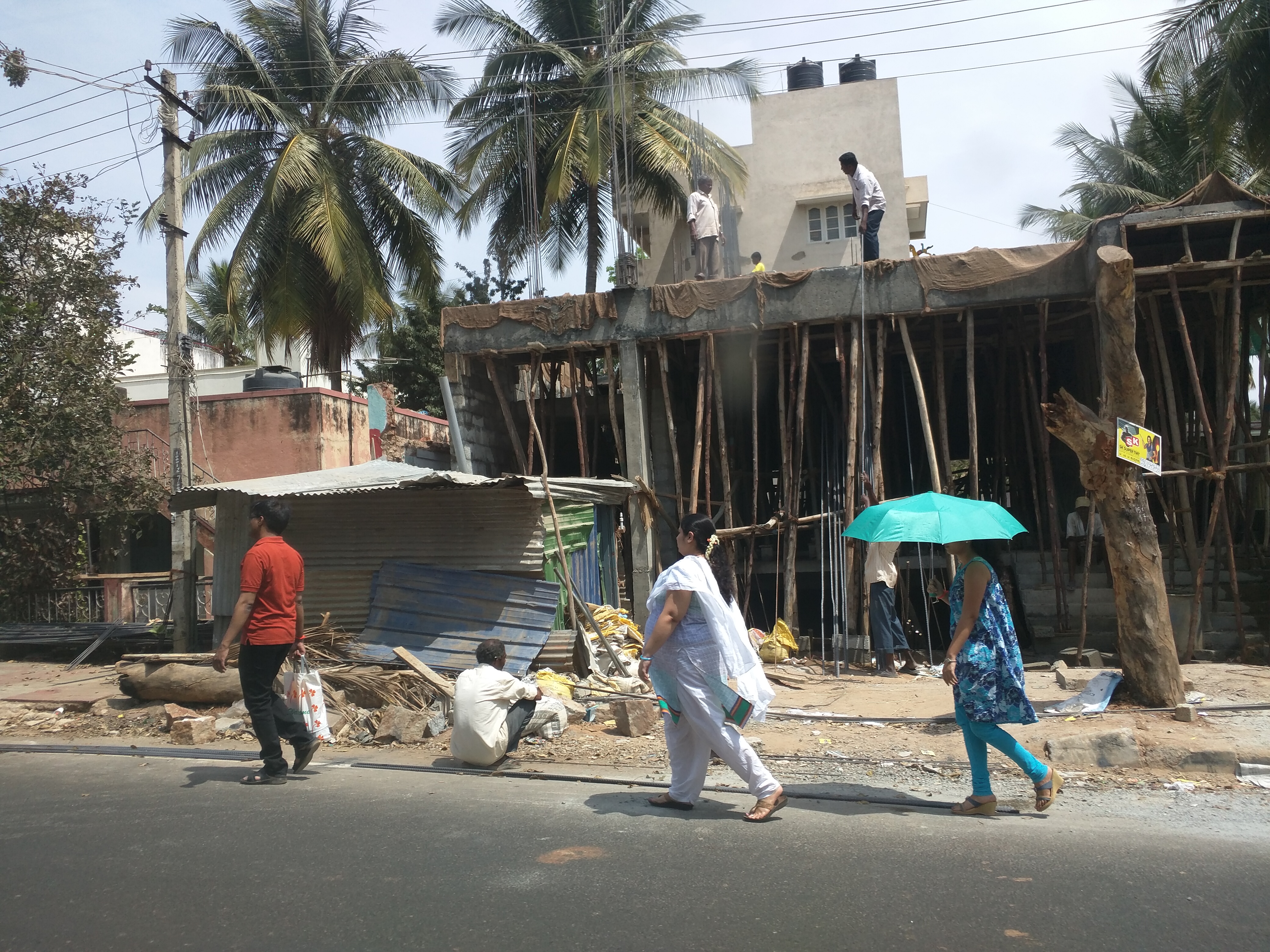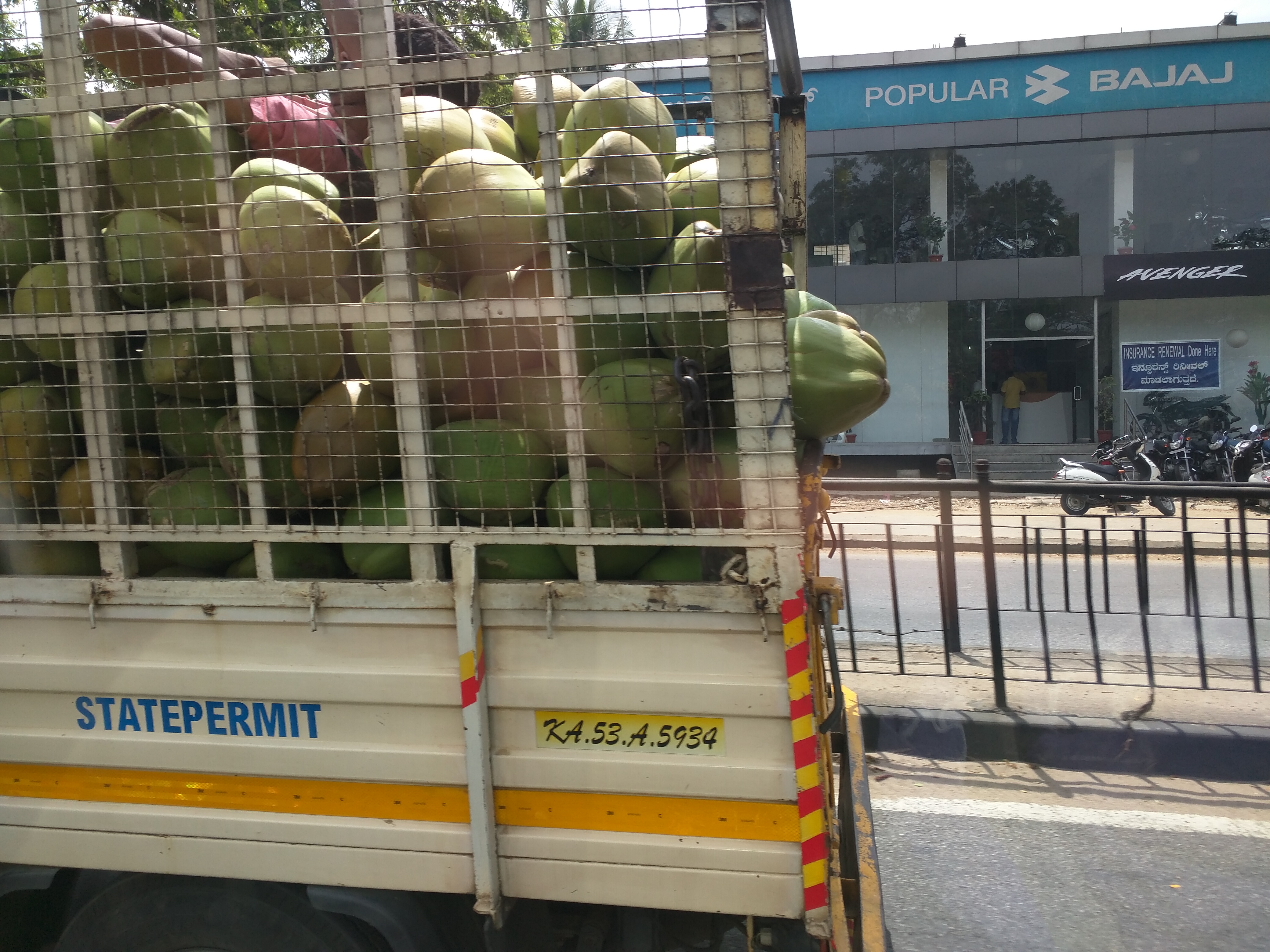 The next video is longer, and shows some interesting roadside scenes. We’re driving along MG Road in Bangalore for most of the way. In two places (around 15 seconds into the video, and another at 1:21) you’ll notice an auto rickshaw travelling in the opposite direction to the rest of the traffic. This is a not uncommon sight. In other countries, you might say the vehicle is on the wrong side of the road. In Bangalore, you’d say it’s in exactly the right place to get where it needs to go.