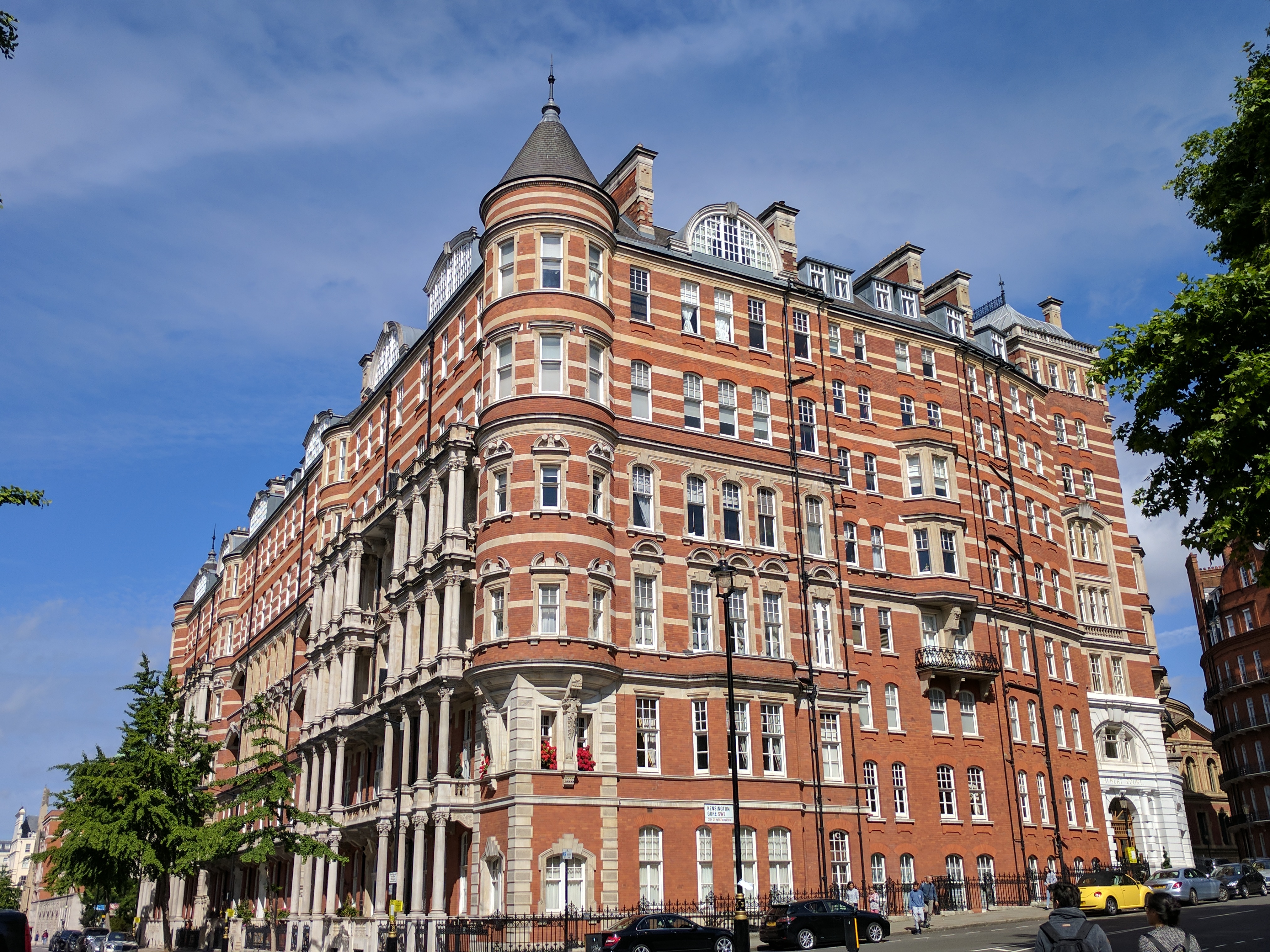Columns and dormers and spires on Prince Consort Road, Kensington: