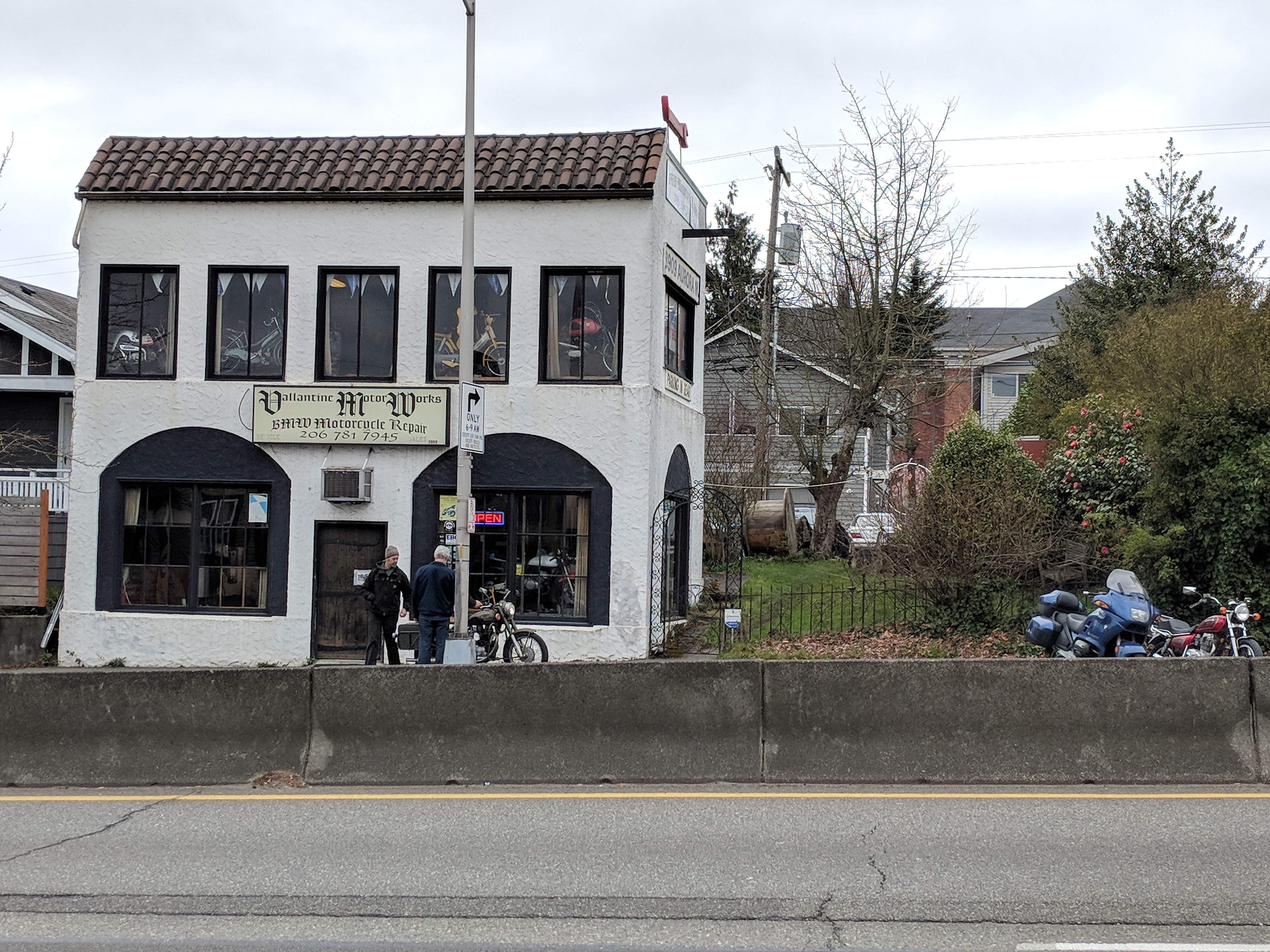 This atmospheric motorcycle repair shop is on Aurora Ave N in Fremont, Seattle: