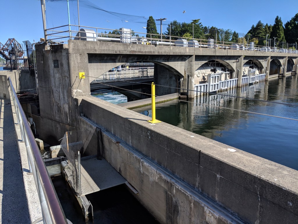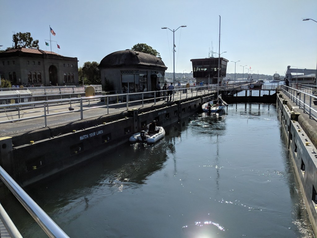 The locks make it possible for boats to move up and down the Lake Washington Ship Canal, travelling inland from the coast or vice versa, even though there’s a big difference in the level of the water in Lake Washington (which is more than 6 metres above sea level) and in Puget Sound (which is at sea level).