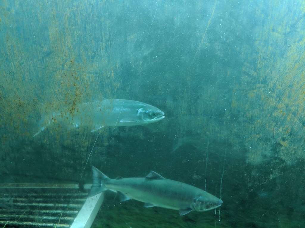 Here’s another picture of the salmon under the water, on their way up the ladder from the ocean to the lakes: