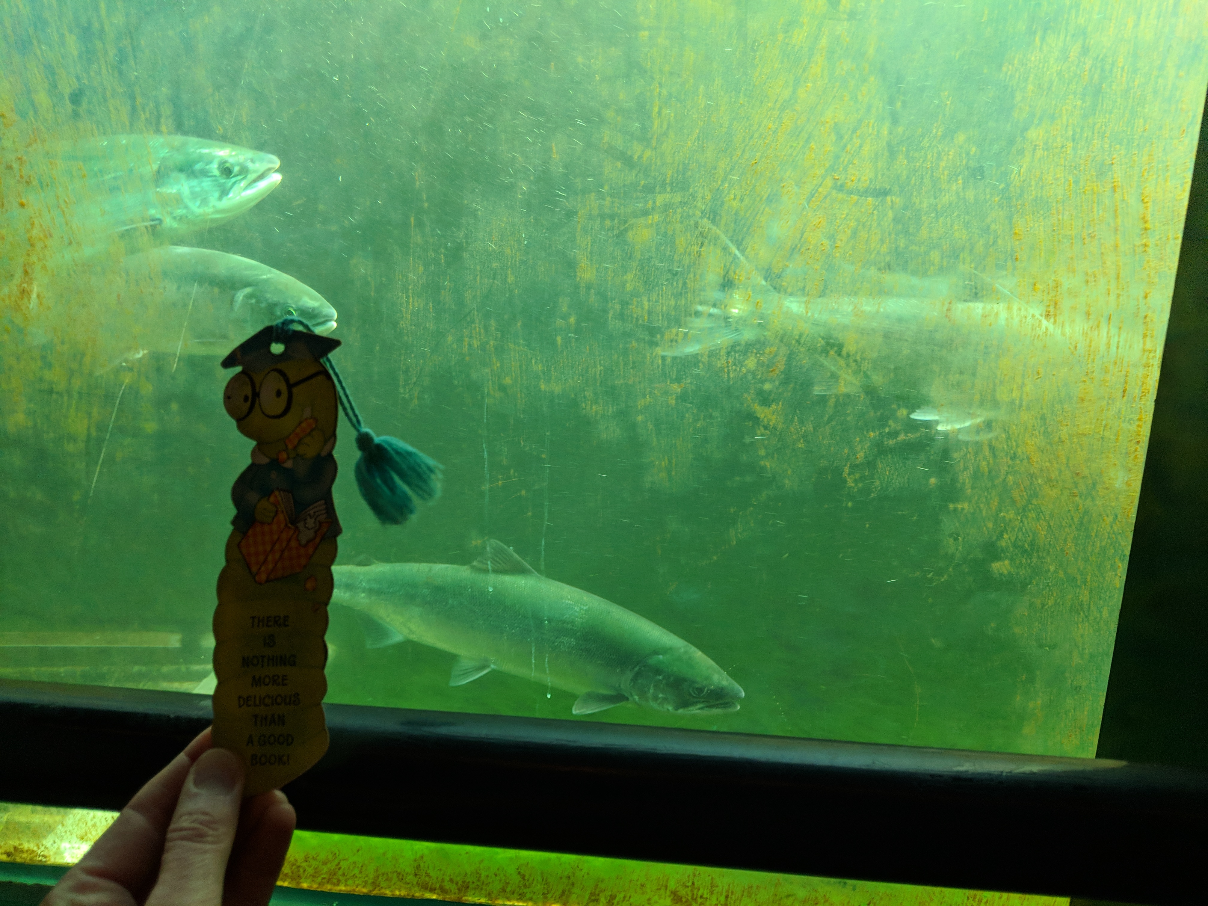 Me with Sal the Sockeye Salmon, at the fish ladder built alongside the Ballard Locks. Sal and his mates are taking it easy in the deep waters before tackling the next jump up the fish ladder: