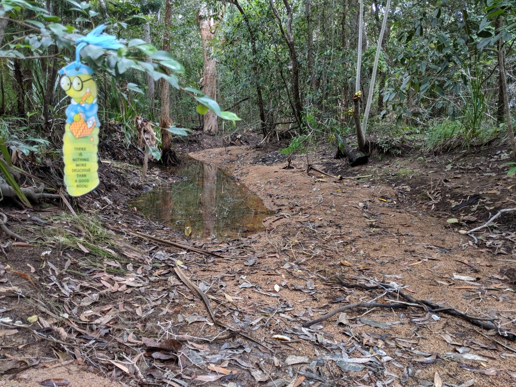 The drive to the beach takes you along a dirt road, crossed by gullies and fords, surrounded by dense Australian bush. A four-wheel drive is useful. Here I am, your dauntless travel guide, surveying a pretty scene along the route: