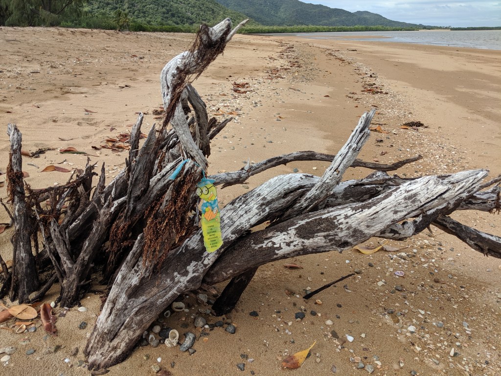 Me and an art piece created by sea and wind, on a beach at the north-west end of Magnetic Island: