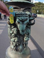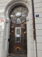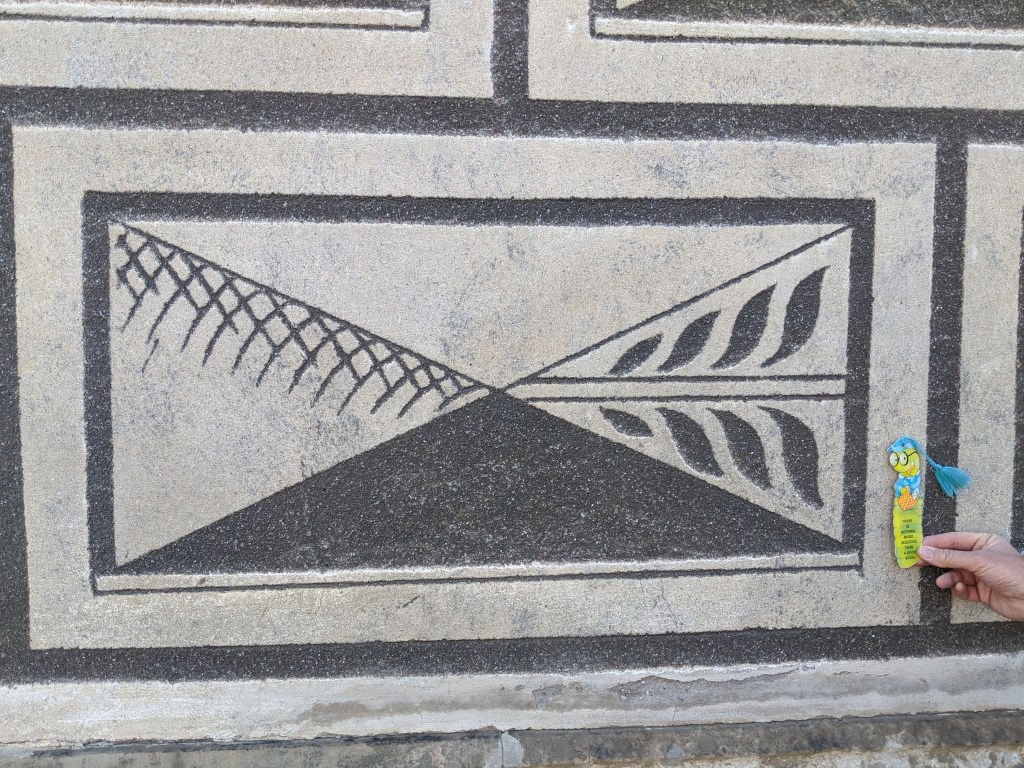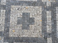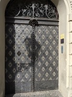 Prague is a city of patterns. In particular for a personage like your faithful worm, who spends much time significantly near the ground, the paving stones are a source of pleasure. Ornate doorways, stamped lamp posts, and patterned walls add to the local colour.