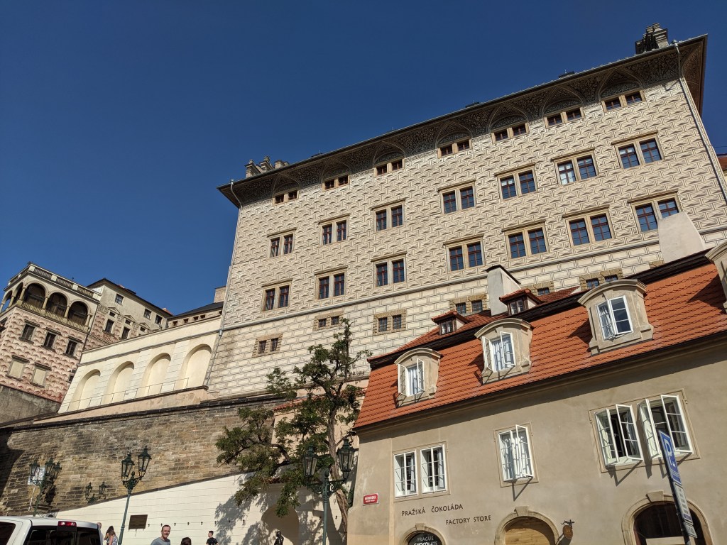 When doorways don’t suffice, people decorate entire buildings. The next picture shows me up against a Renaissance sgraffito panel on the facade of the Schwarzenberg Palace: