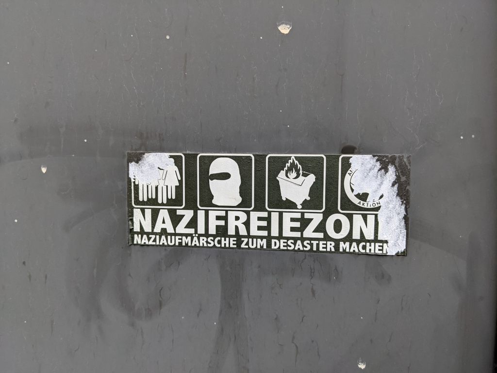 A modern sticker on a mailbox, bringing the ugly to the sublime: