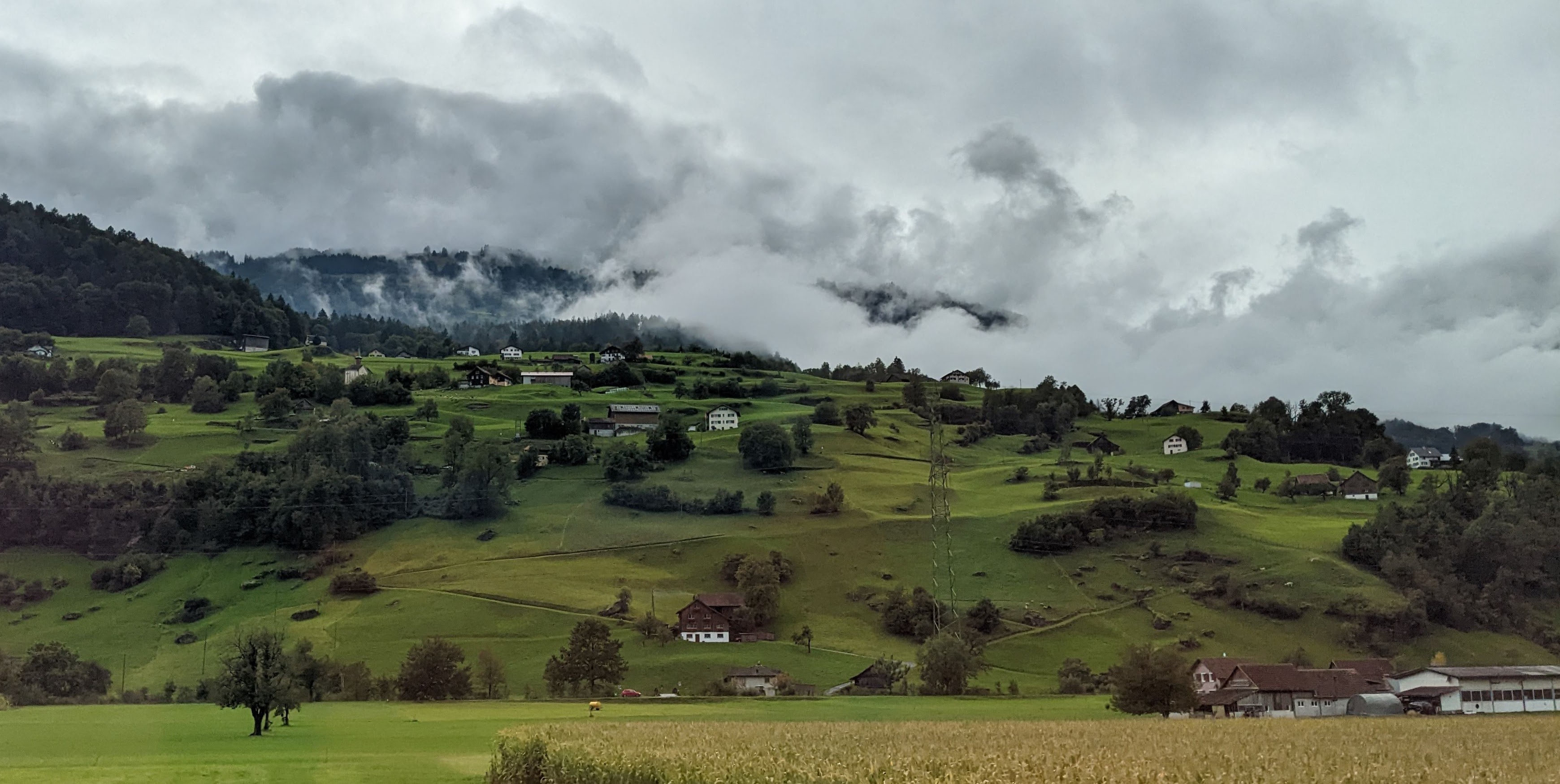 I’ve remarked on the green felt effect of the Swiss countryside in earlier posts. Here’s more of it: