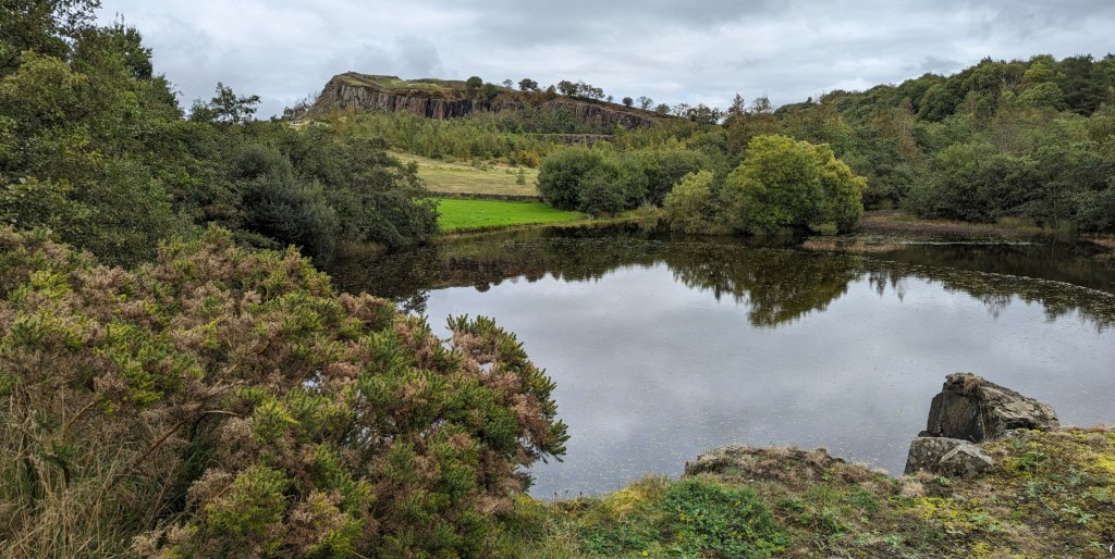 Here’s a parting shot of Hadrian’s Wall from across the quarry pond: