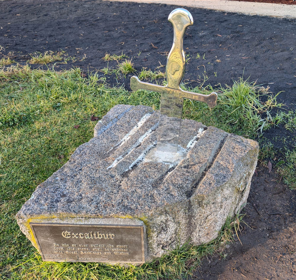 On the edge of the ring of stones is a rather attractive, though fake, Excalibur — complete with injunction to try to pull it out of the stone and thus gain great knowledge and wisdom: