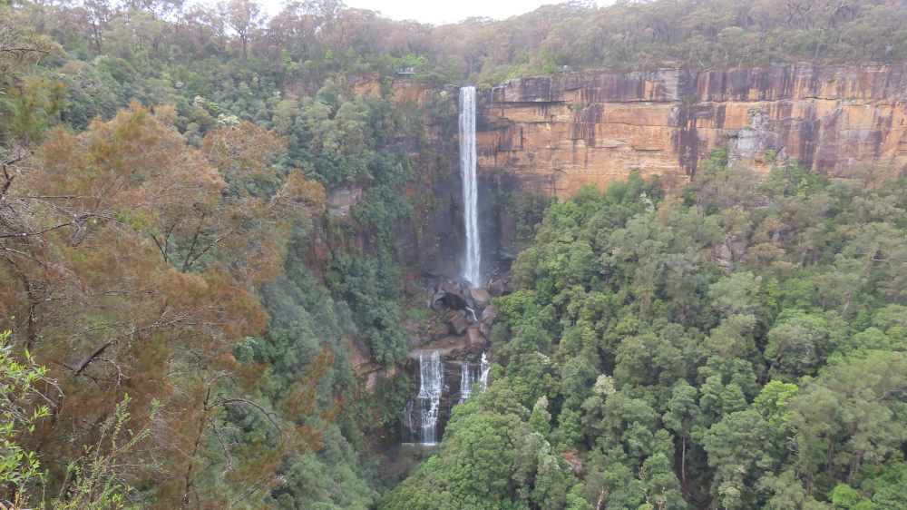 We left Meryla Flora Reserve and made our way to Fitzroy Falls, on the other side of Morton National Park. The waterfall is 81 metres high, formed by the Yarrunga Creek dropping into Kangaroo Valley. To get an idea of the scale, notice the people on viewing platforms on the left and right of the falls in this picture: