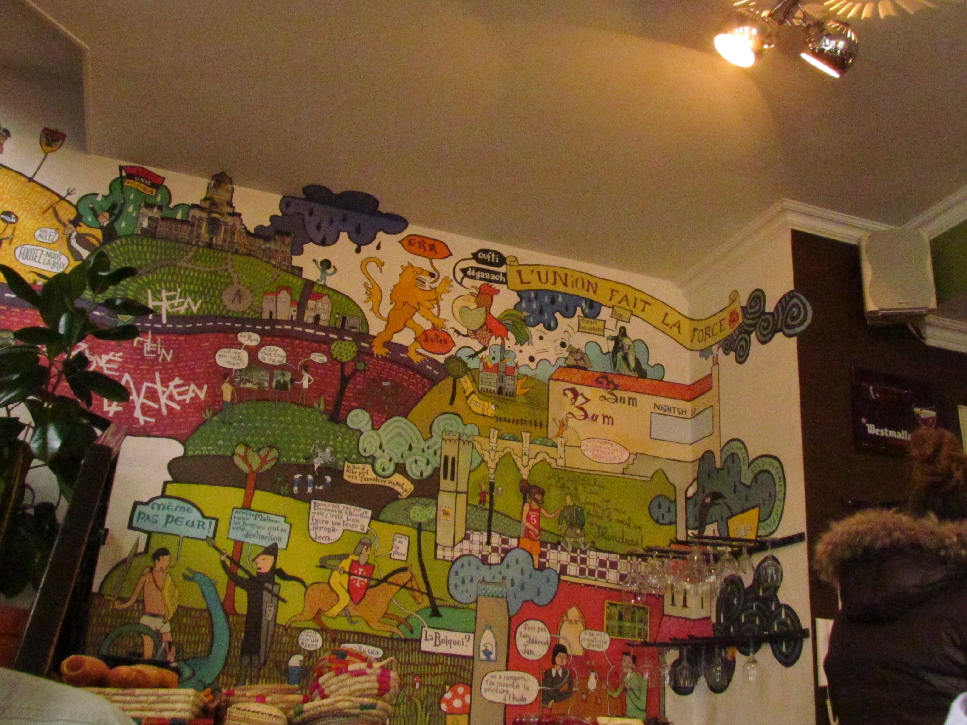 Houtsiplou café-restaurant, 9 Place Rouppe, Brussels. Cheerful and fast service, great atmosphere, good food. Photos below.