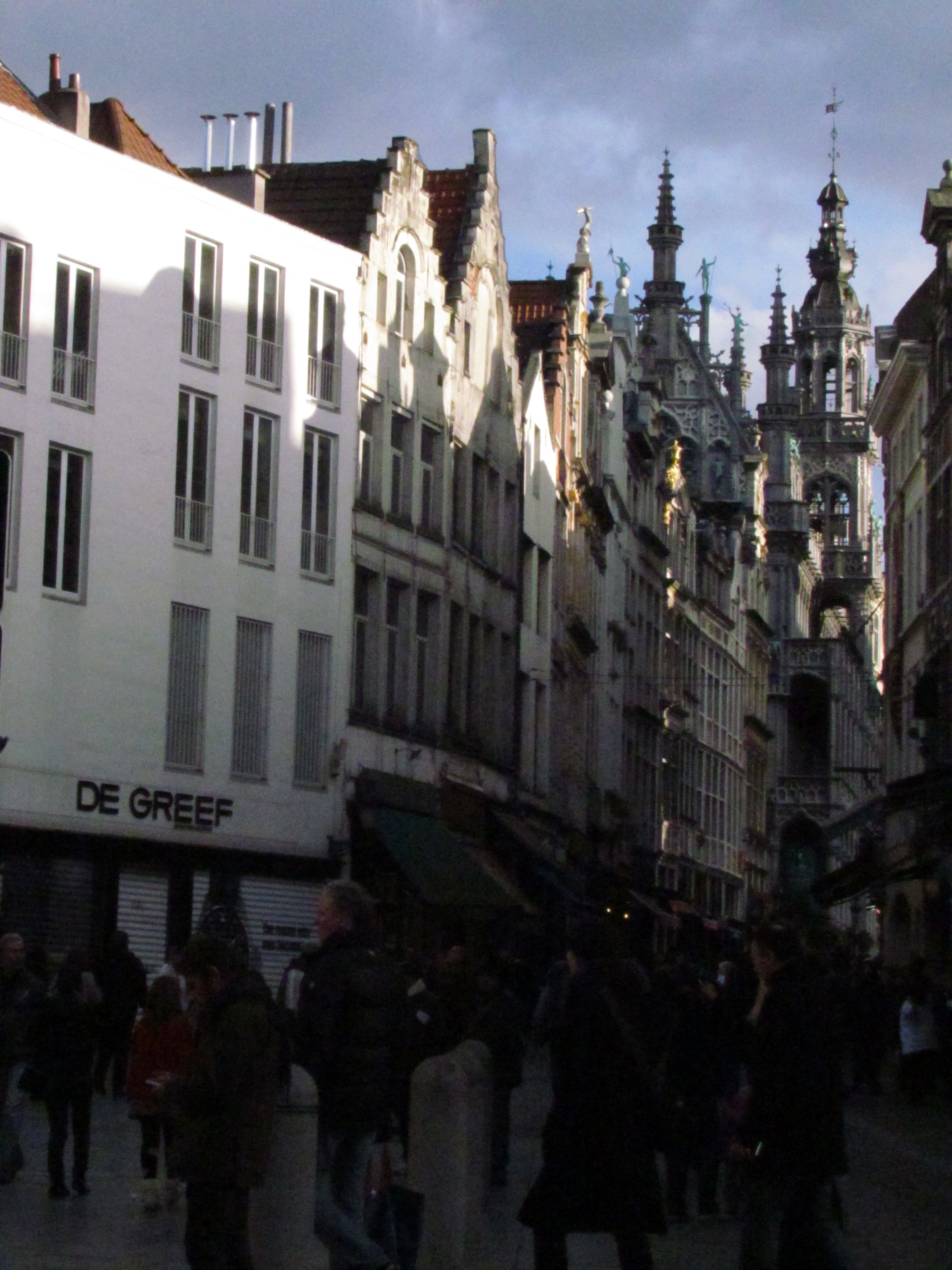 The Grand Place is the central market square of Brussels, surrounded by grand buildings, many of them decked out in gold. Here is another side of the square: