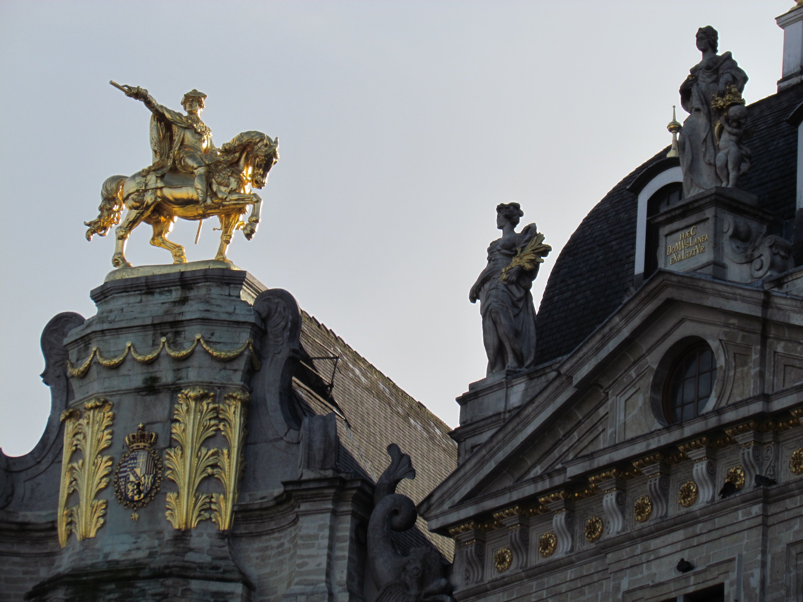 A gold-leafed statue of Charles of Lorraine tops the Maison de Brasseurs in the Grand Place: