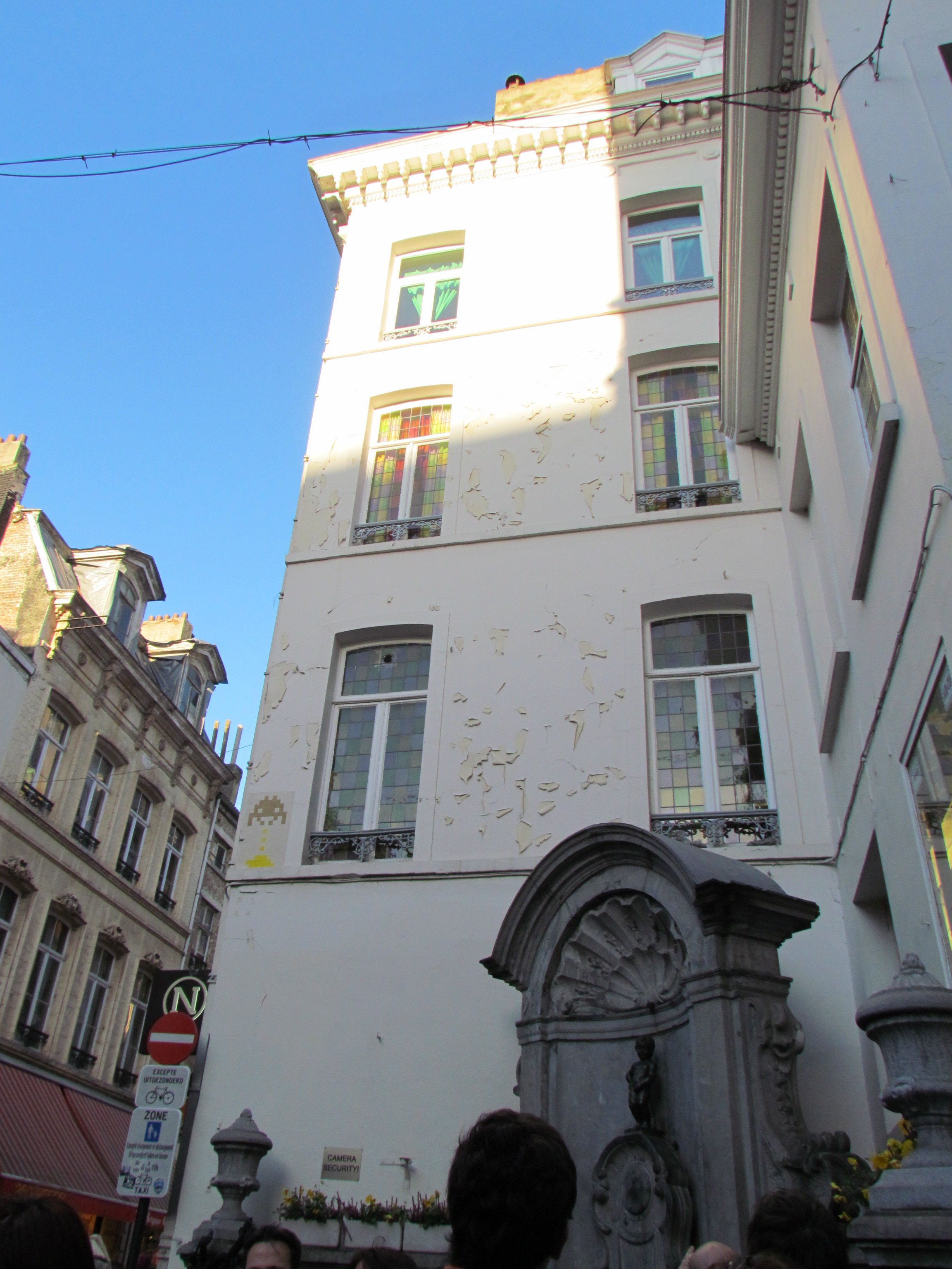 Like everything else in Brussels, Manneken Pis has a French name as well as a Dutch one. His is le Petit Julien. This venerable little chap is made of bronze, and has inhabited his alcove since 1618 or 1619. A closer view: