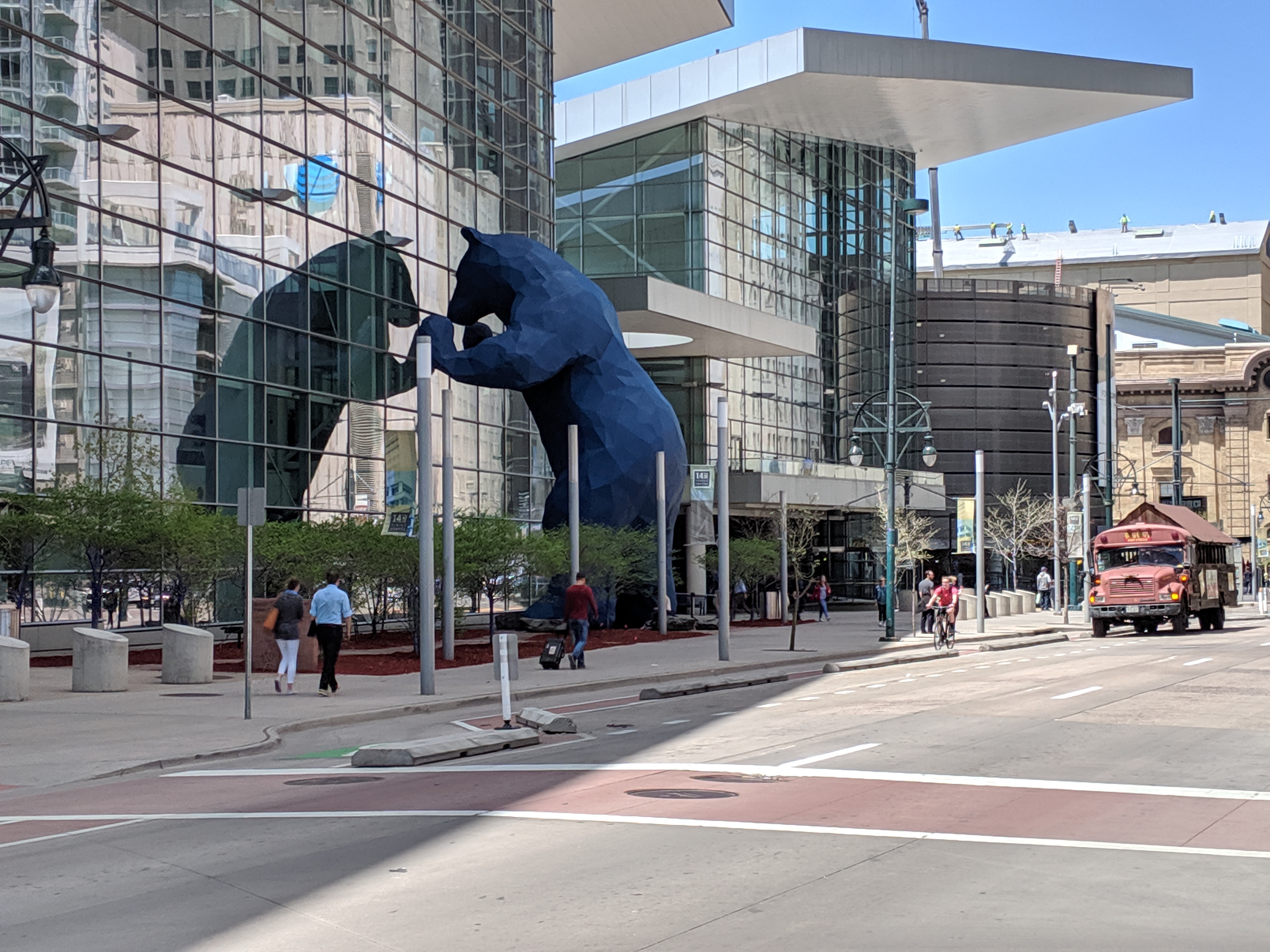 Just off the mall is the Colorado Convention Center, with this cute little bear peering through the window:
