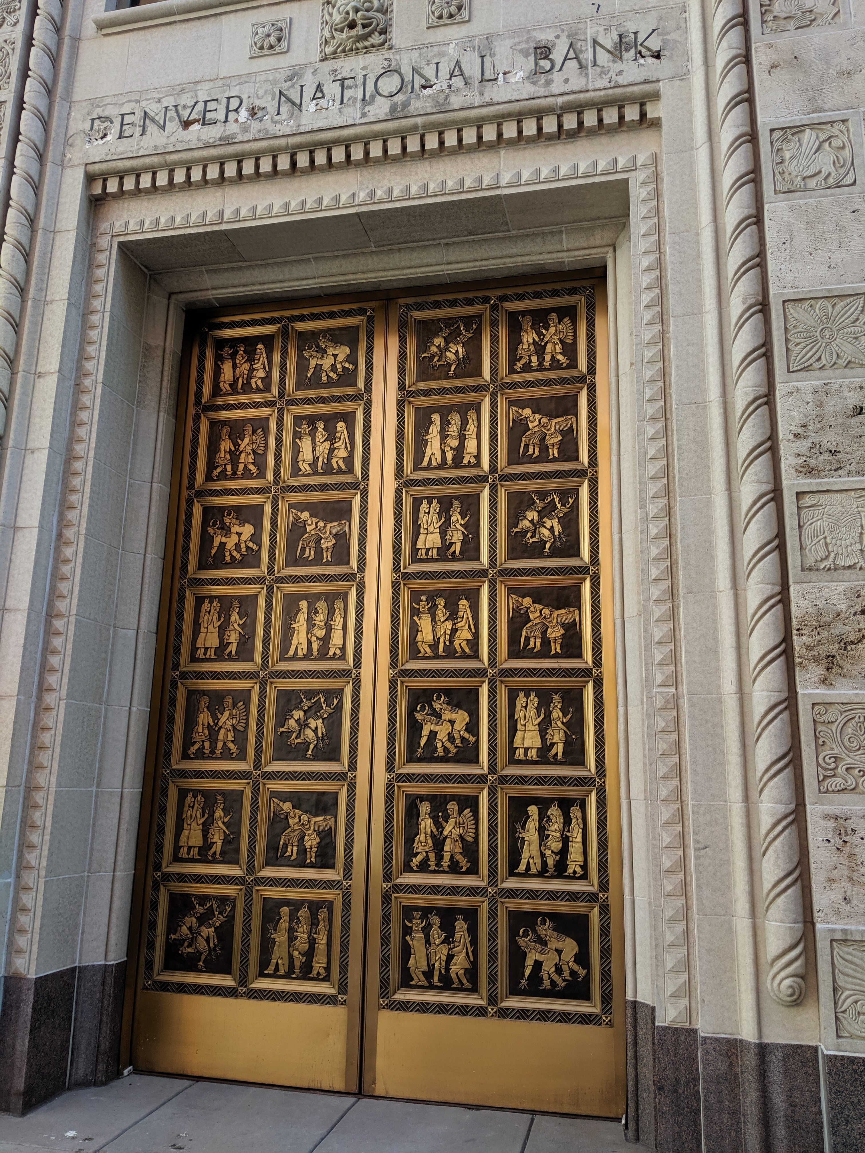 A couple of banks on 17th Street caught my attention. This is the door of the Denver National Bank: