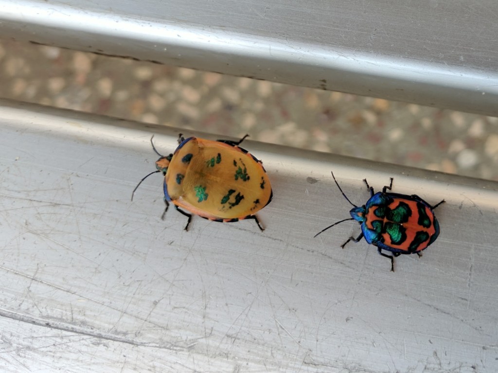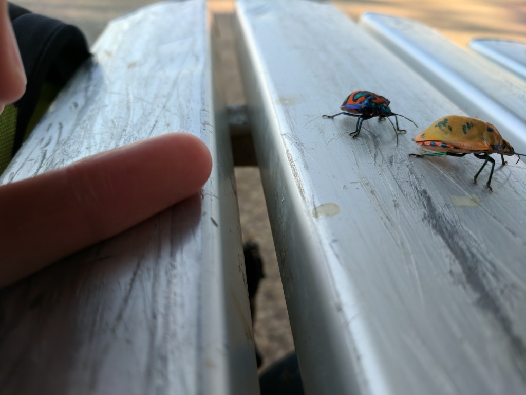 Look before you sit. The colourful bugs pictured below were roaming around on a park bench. A careless sitter would have squished them.