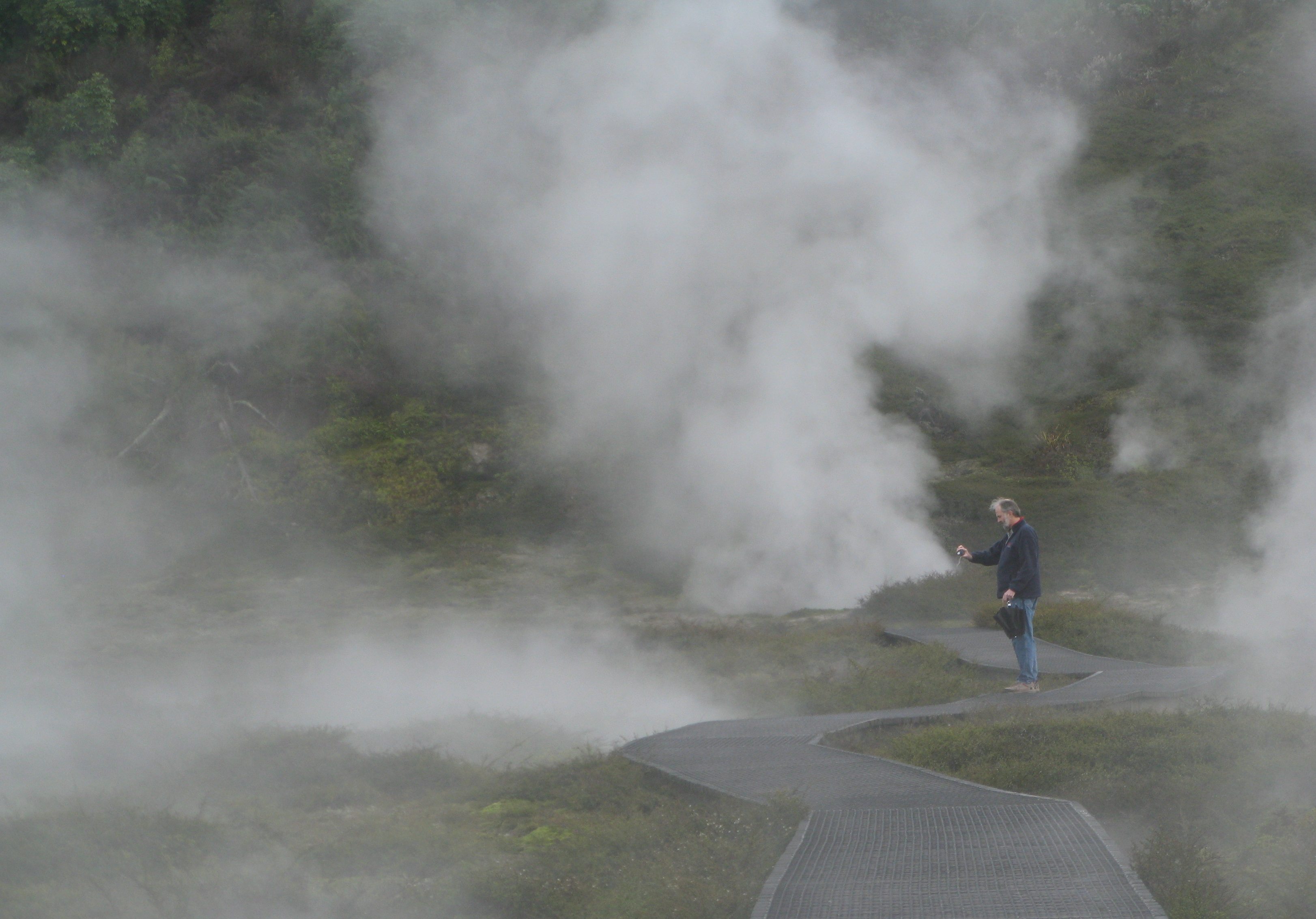My impressions? How green everything is! How remarkable to see gouts of steam spouting upward from forests and valleys, even from farmyards and roadside gutters. It’s like being in the middle of a Tolkien scene.