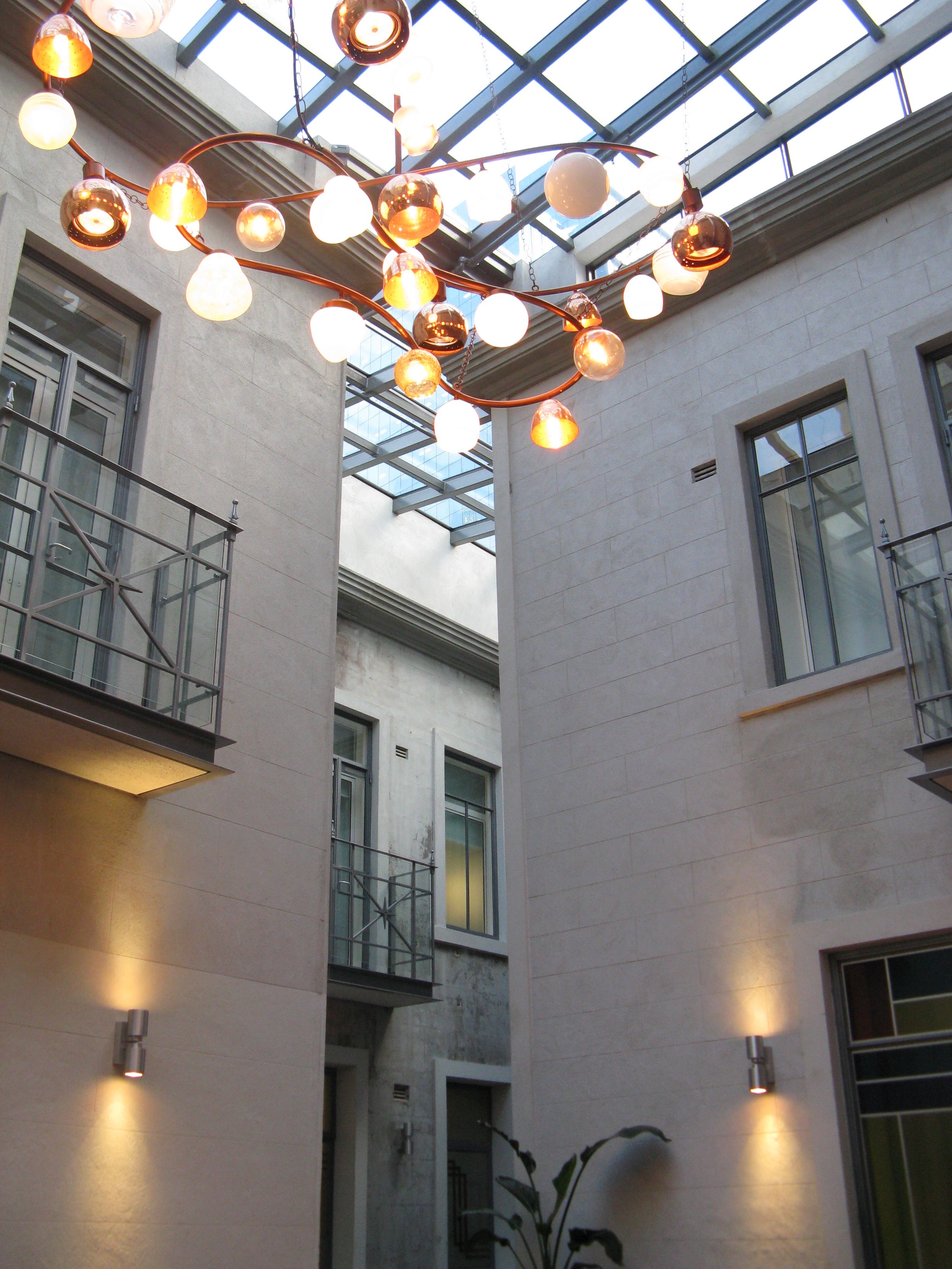 Auckland is a great city, no doubt. But when we arrived it was pouring with rain. We found the Hotel DeBrett and opted for an afternoon of DVDs, chocolate and luxury. This is the glass-roofed courtyard in the middle of the hotel, where you have breakfast, coffee and company: