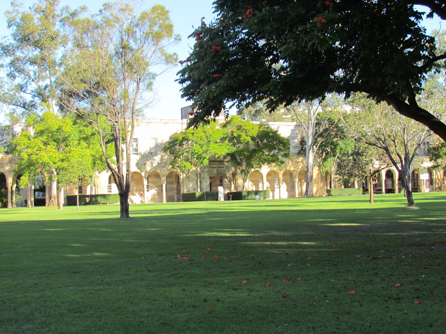 Moving on from dark humour to the light of academia, this is the outside wall of the magnificent great court at UQ’s St Lucia campus: