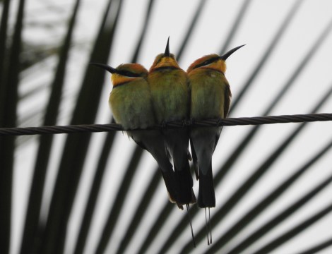 Another aspect of Magnetic Island that had the TC ooh-ing and aah-ing was the birdlife. For obvious reasons, this worm is not that fond of birds (Jonathan excepted). As a teaser for readers who’re keen on our feathered fiends, below is a clump of Rainbow Bee-eaters:
