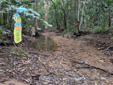 Let’s move fifty kilometres north, to Cape Tribulation. Walking from the car park to the beach, we crossed this dark pond: