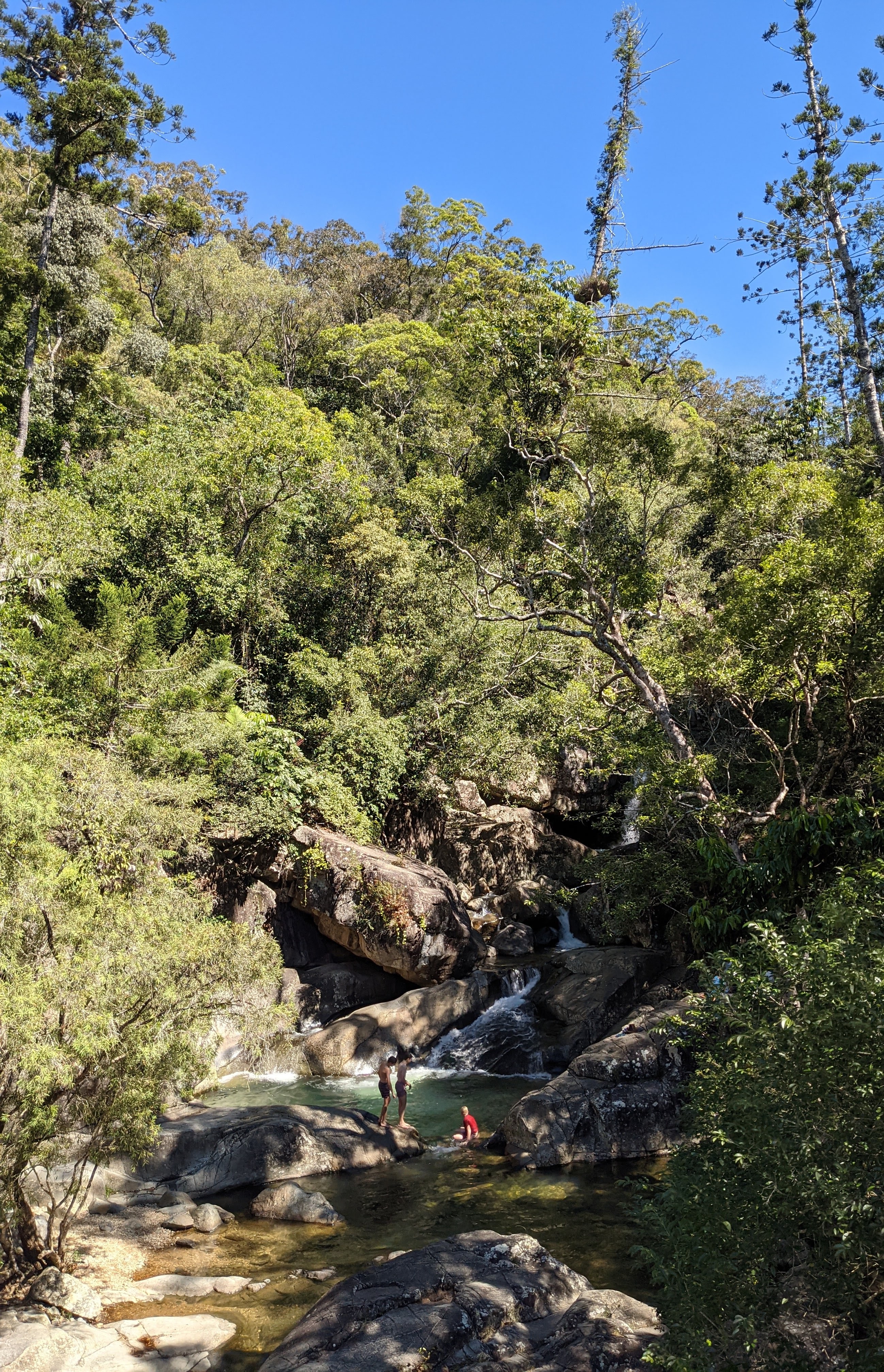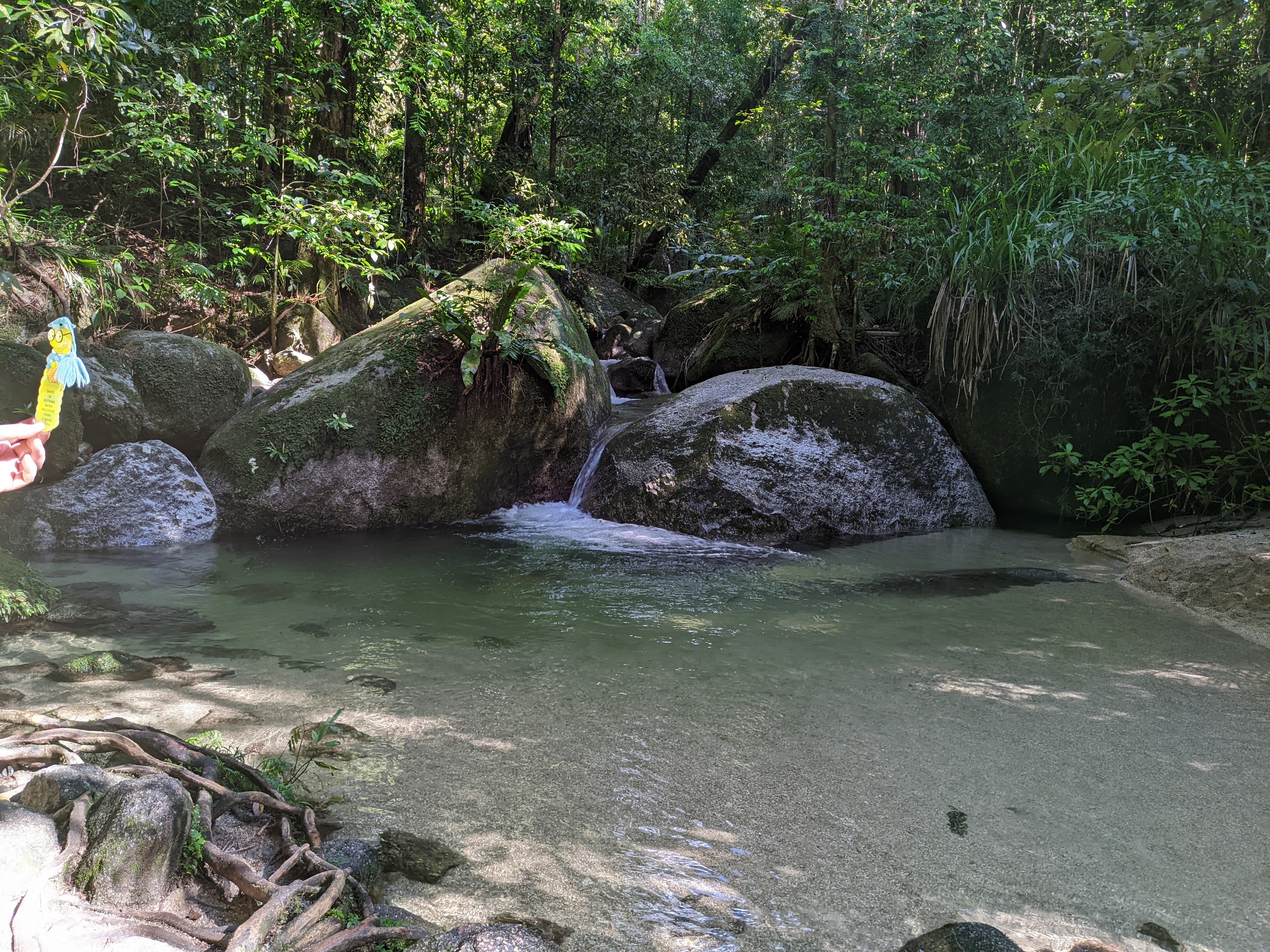 Little Crystal Creek is about one hour’s drive along Bruce Highway, heading north from Townsville in Tropical North Queensland. The road winds steeply up from sea level to the pools and falls of Little Crystal Creek. The trip is a little daunting, especially if, like this worm, you’re not fond of heights. But once you reach the creek, it’s well worth it.