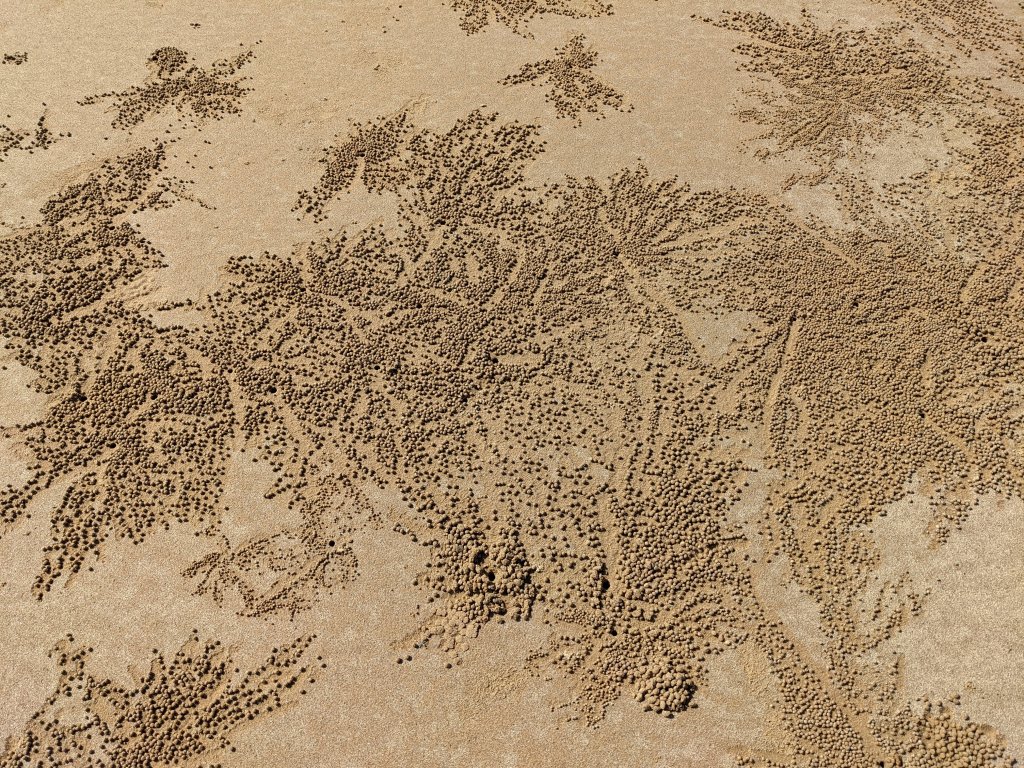 Tiny crabs leave patterns of sand balls, dug up to create their homes: