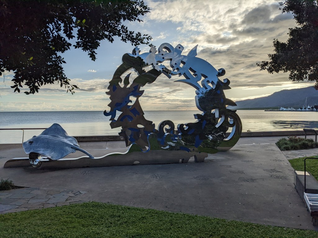 Ray is a life-size sting ray, part of an imposing sculpture on the Cairns Esplanade. It’s titled Reef Guardian (Citizens Gateway to the Great Barrier Reef), by Brian Robinson: