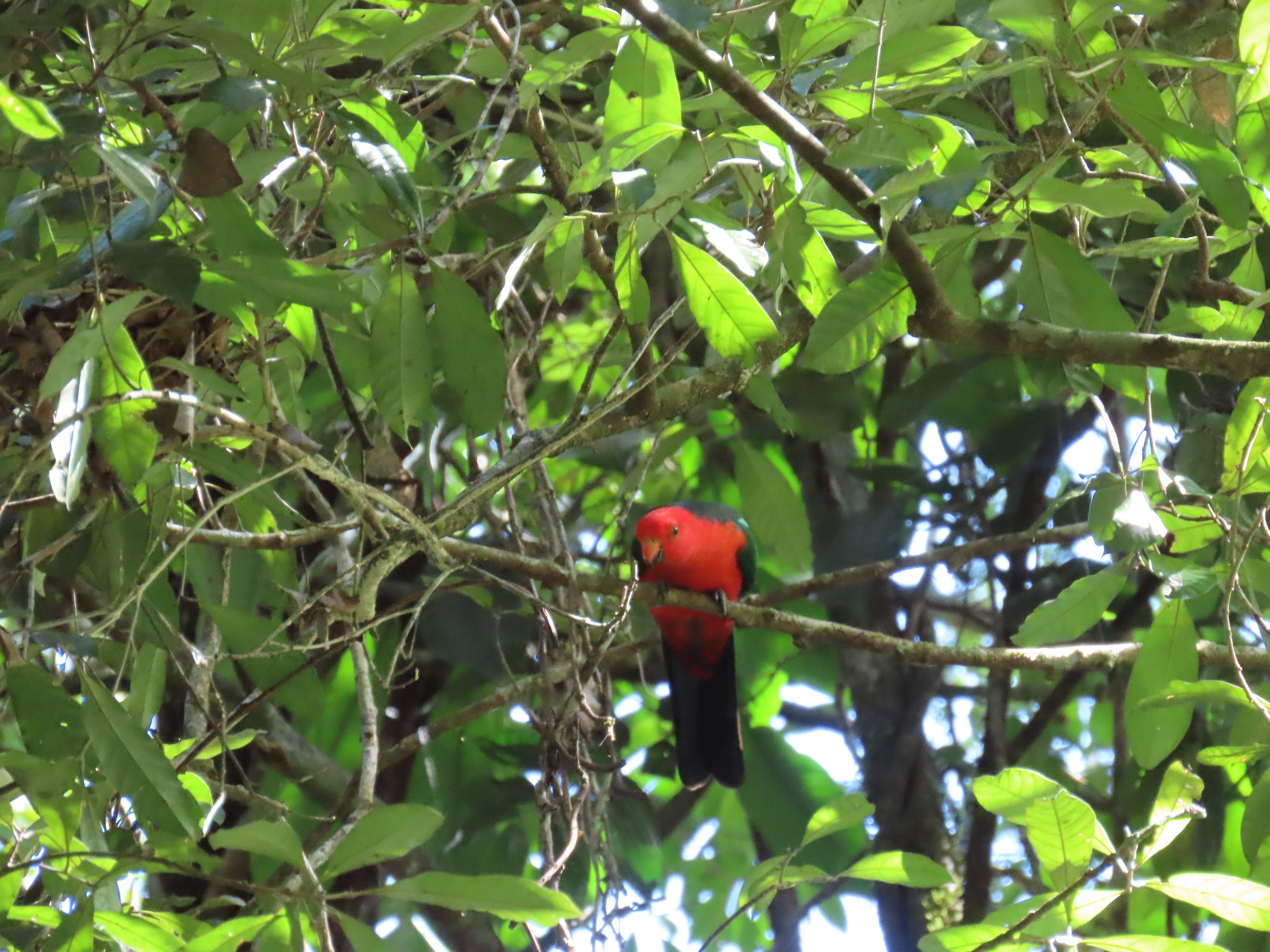 That particular descendant of the dinosaurs is a King Parrot, one of the 430 species of birds found in this region.