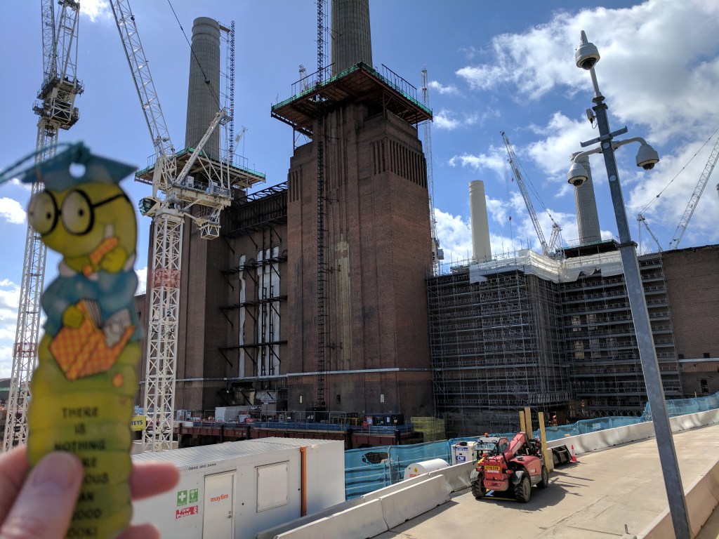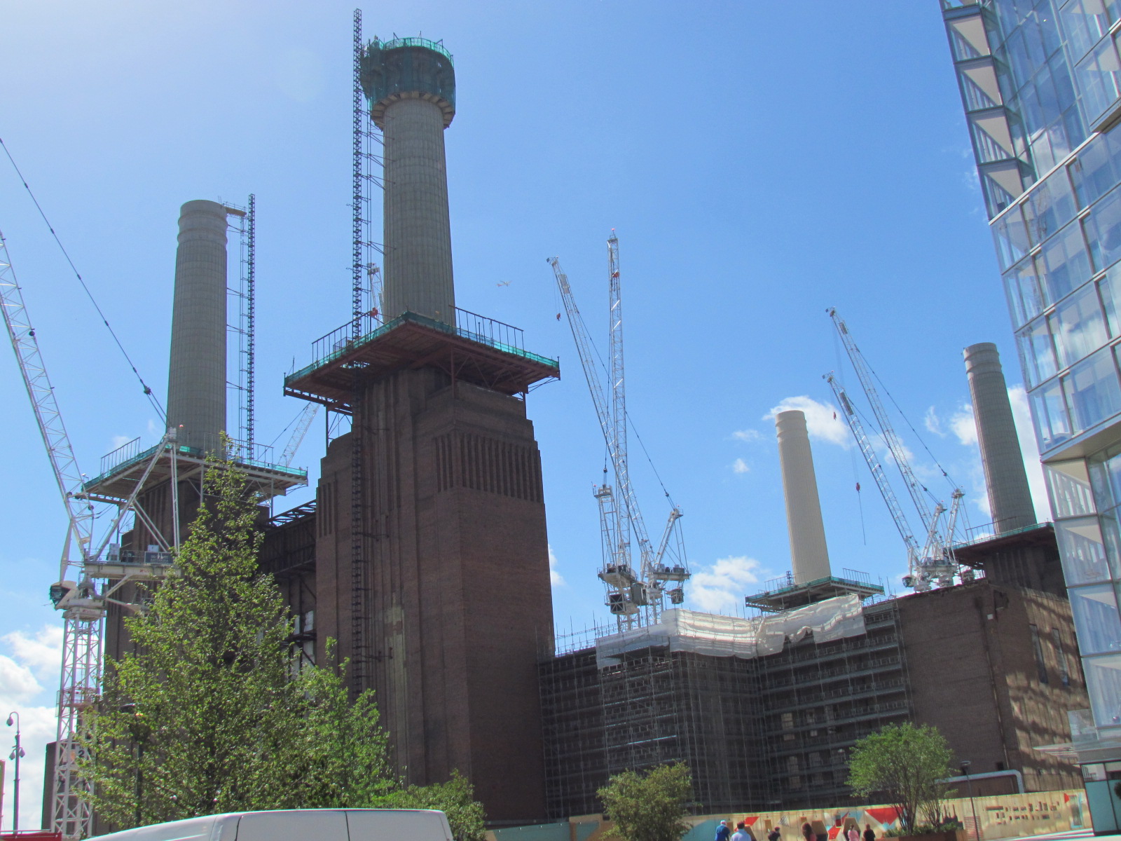 Round the bend, a few more steps, and there it is! The Battersea Power Station, currently undergoing a face lift: