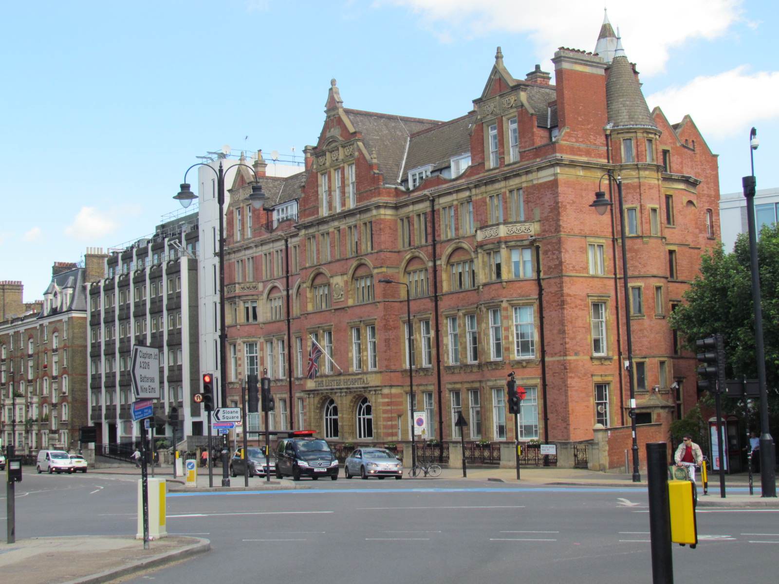 The Lister Hospital is at one end of Chelsea Bridge, before you cross the river to the power station: