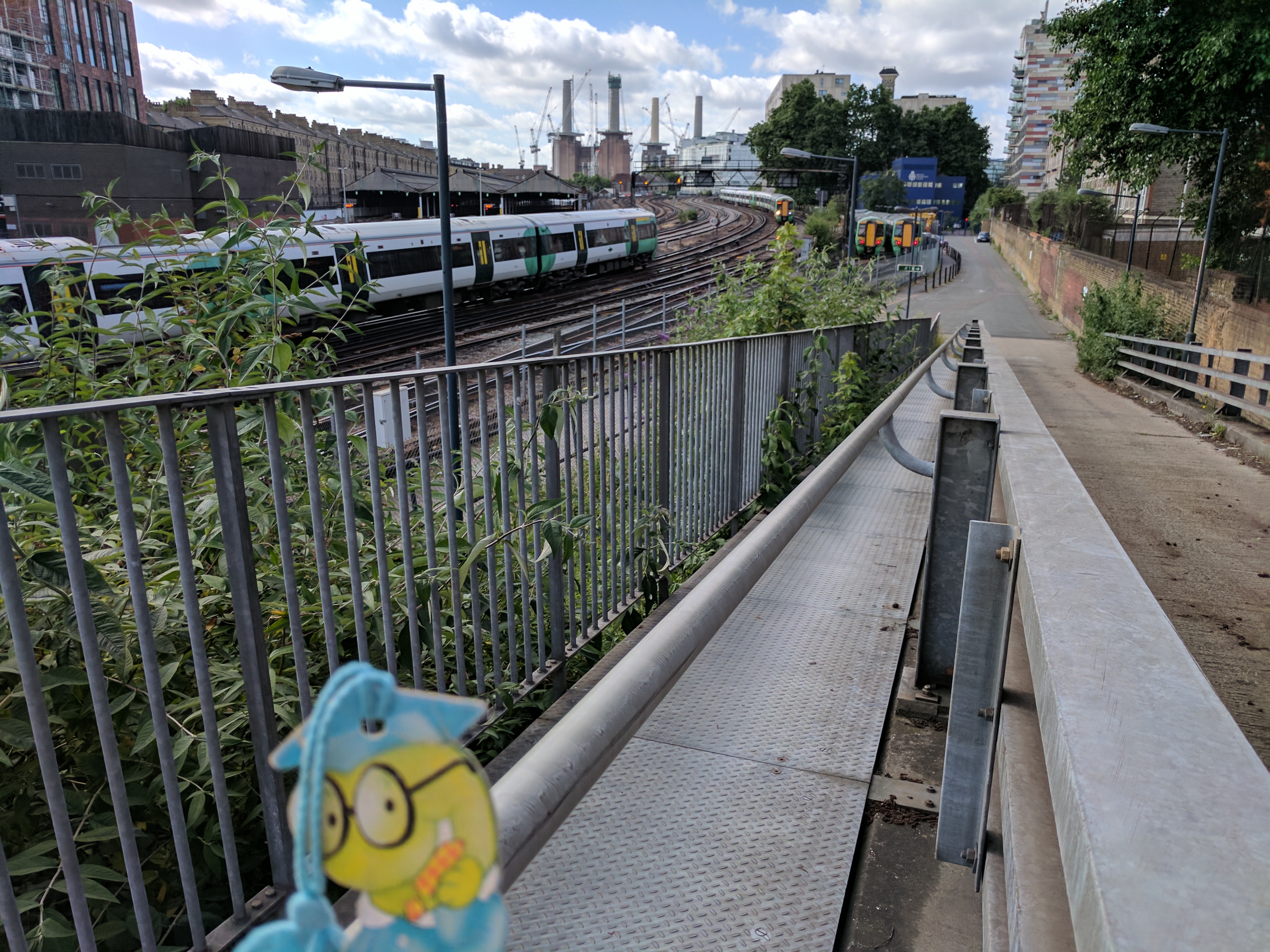 Right, thought the TC. Let’s take a stroll down to BatterSea and see what’s what. She followed the map meticulously, as is her wont. Predictably, we ended up in a dead end. The TC is prone to that sort of thing. This fallibility of hers does lead us to see some interesting corners of the world. This time it was the British Transport Police station off Ebury Bridge. The power station beckons enticingly from the wrong side of the rails:
